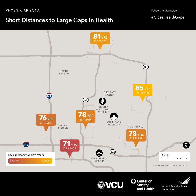 Babies born in different parts of Phoenix face up to a 14-year difference in life expectancy.