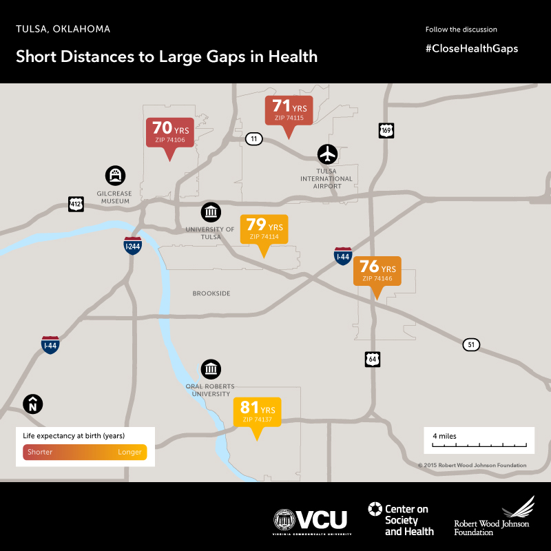 Babies in different zip codes in Tulsa, Oklahoma face up to an 11-year difference in life expectancy.